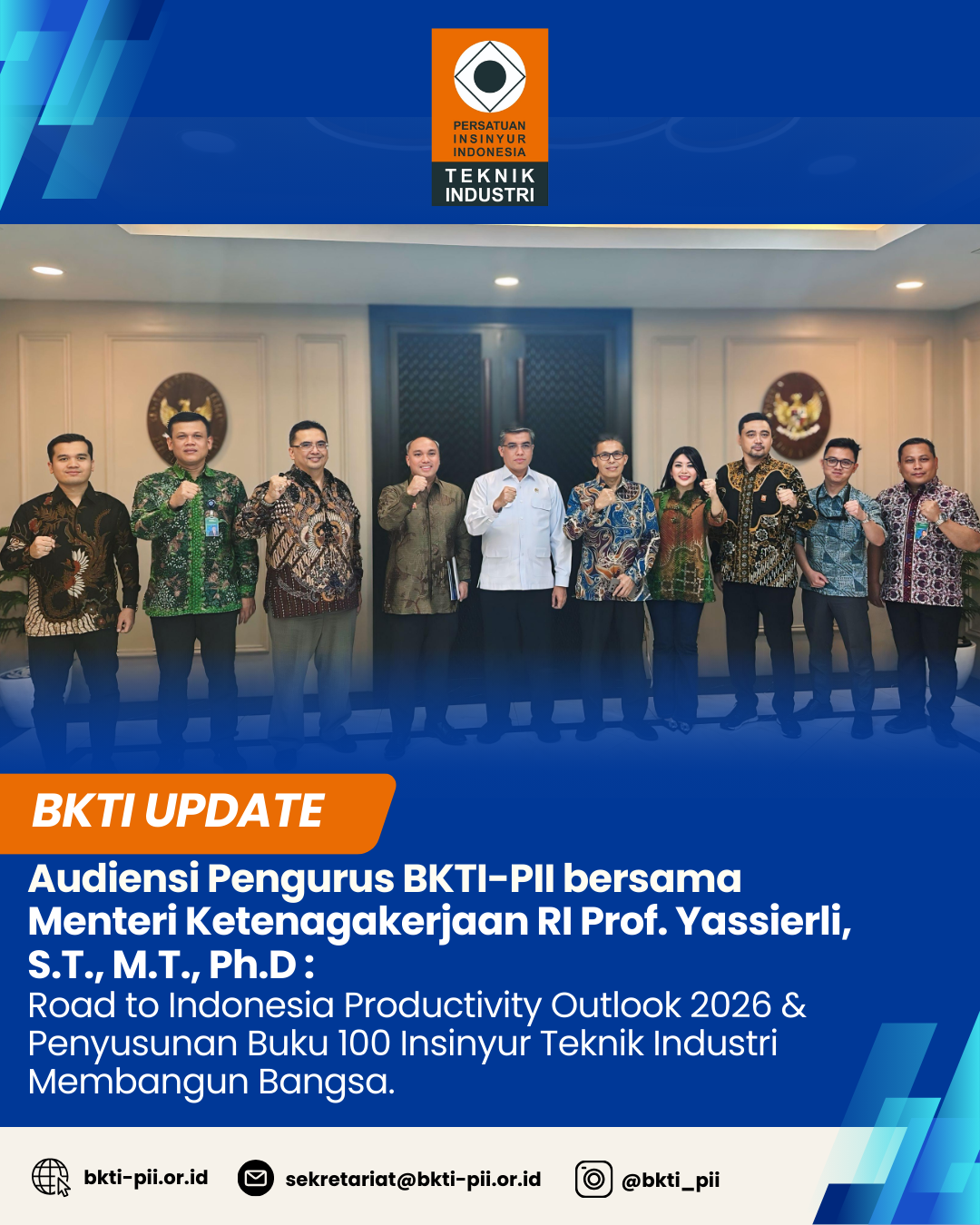 Jawa Barat — Badan Keahlian Teknik Industri – Persatuan Insinyur Indonesia (BKTI–PII) menyampaikan ucapan selamat dan sukses kepada Dr. Ir. M. Satori, MT., IPU. (Ketua Bidang IX Keberlanjutan & LST